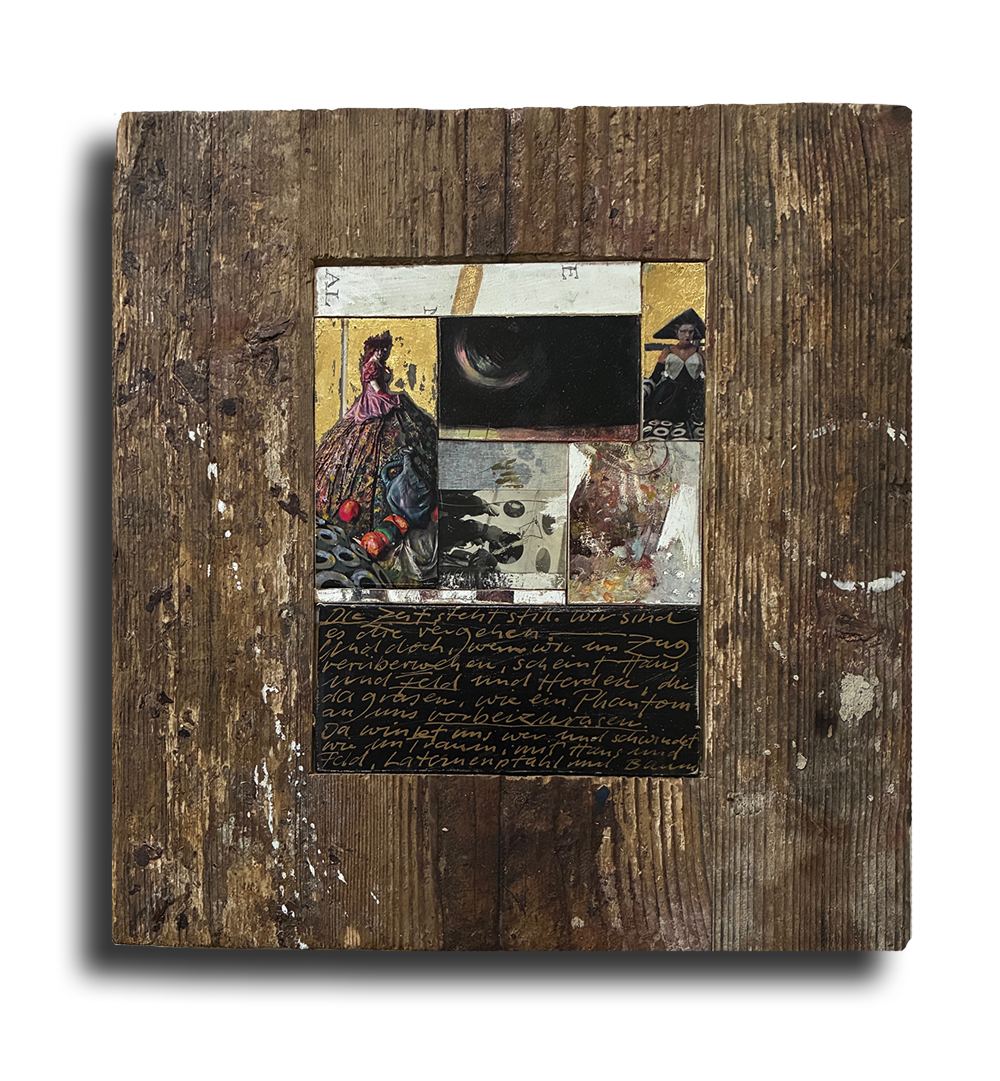 Ölbilder 11x16 cm, eingebettet in ein Passepartout 30x40 cm, schaffe ich einen Raum für eine malerische und eine poetische Ebene.