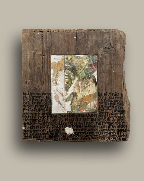 der Stille und des Innehaltens, so empfinde ich den Prozess beim Malen. Da entsteht wie von selbt eine Gestalt, ein Gefieder, ein Haus eine Farbstimmung, es gilt der Intuition zu folgen. Malen bedeutet auch, sich fallen zu lassen, aus sich selbst zu schöpfen. Eine Spur wird gefunden und dabei neue gelegt, die wiederum nicht alle gegangen werden, so ist das Bild letztlich eine Reduzierung auf das Wesentliche in sich selbst.
