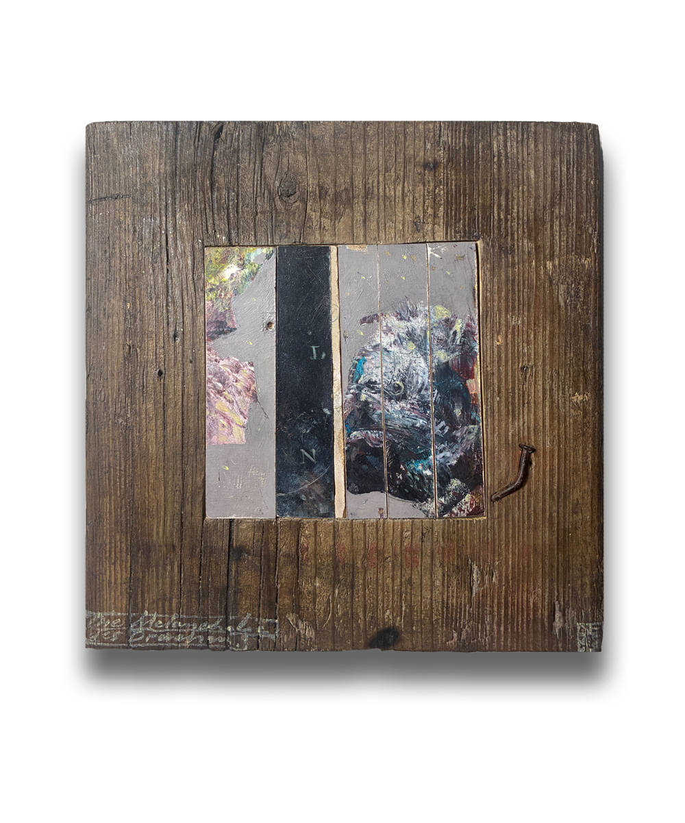 Ölfarbe auf zwei Holzmalflächen, eingepasst und im Holzblock 30,5x31,5 cm verleimt, Tiefe 5 cm. 2025