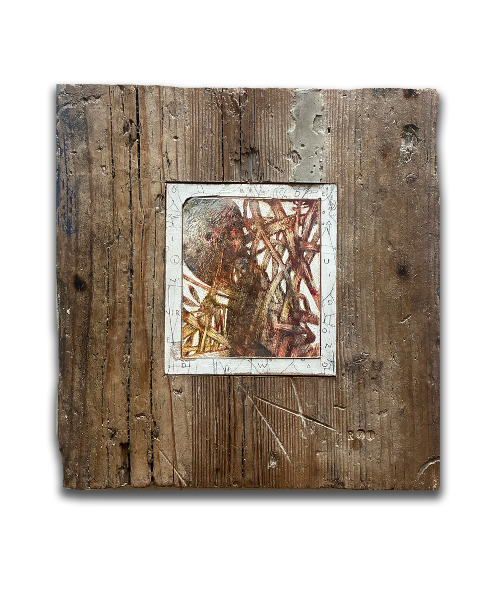 Ölfarbe auf zusammengesetzte Holzmalflächen, eingepasst und verleimt im Holzblock 24 x 30,5 cm, Tiefe 5 cm. | 2025