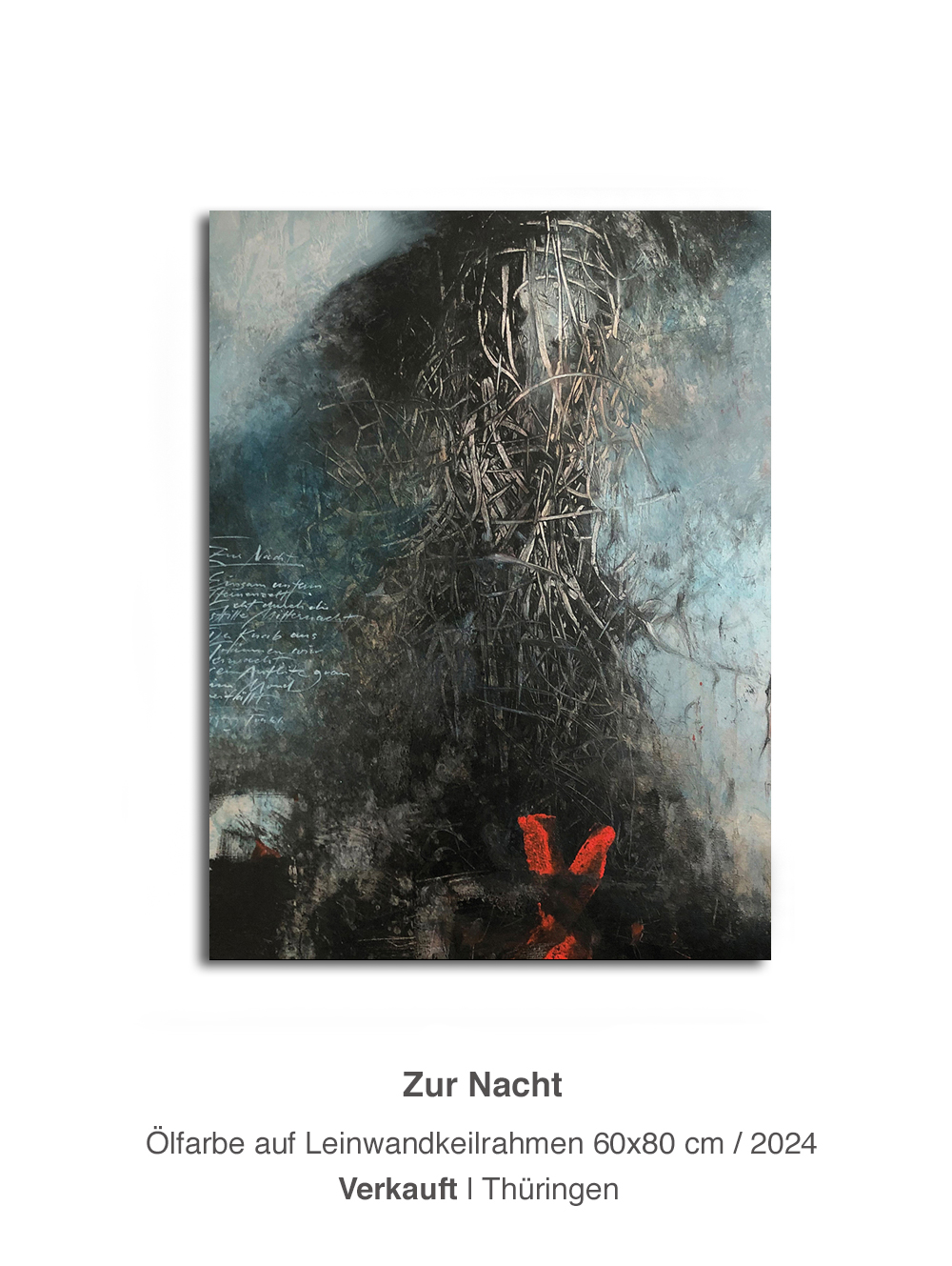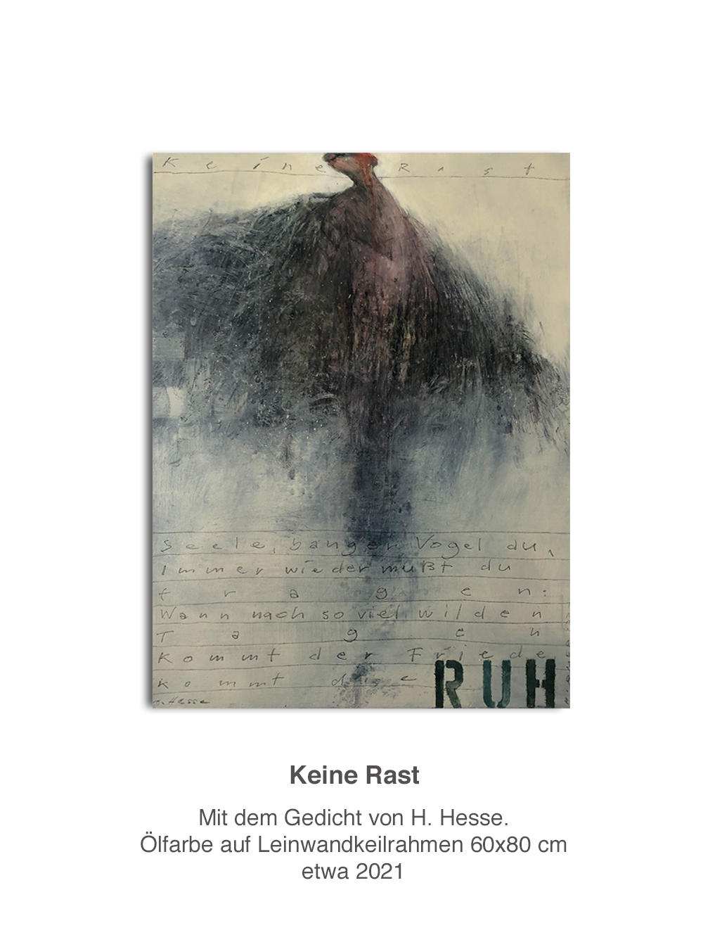 An diesem Bild habe ich mit Unterbrechung etwa ein halbes Jahr gearbeitet bis die Farbschichten sich so transparent überlagern wie sie es hier sehen. Das Bild ist zu dem gleichnamigen Gedicht von M. Kaléko.