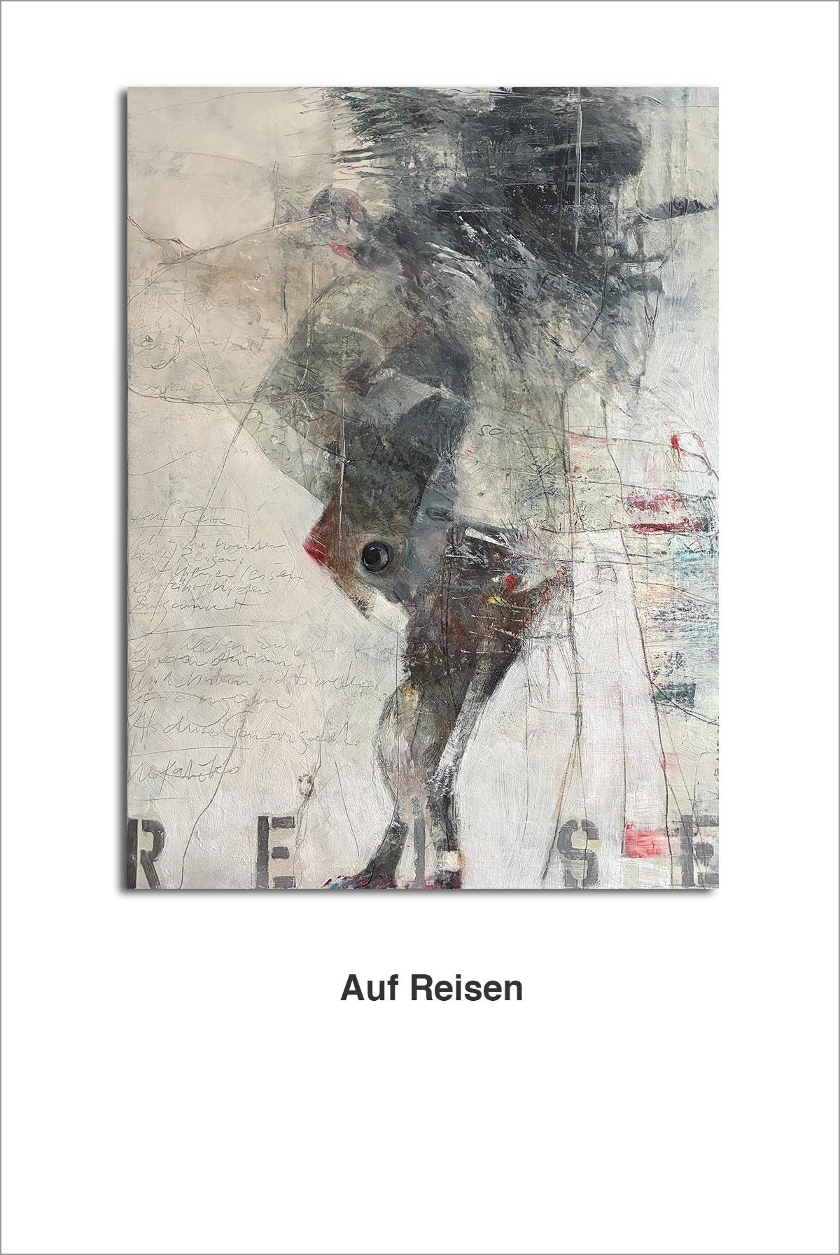 Ein Moment der Stille und des Innehaltens, so empfinde ich den Prozess beim Malen. Da entsteht wie von selbt eine Gestalt, ein Gefieder, ein Haus eine Farbstimmung, es gilt der Intuition zu folgen. Malen bedeutet auch, sich fallen zu lassen, aus sich selbst zu schöpfen. Eine Spur wird gefunden und dabei neue gelegt, die wiederum nicht alle gegangen werden, so ist das Bild letztlich eine Reduzierung auf das Wesentliche in sich selbst.