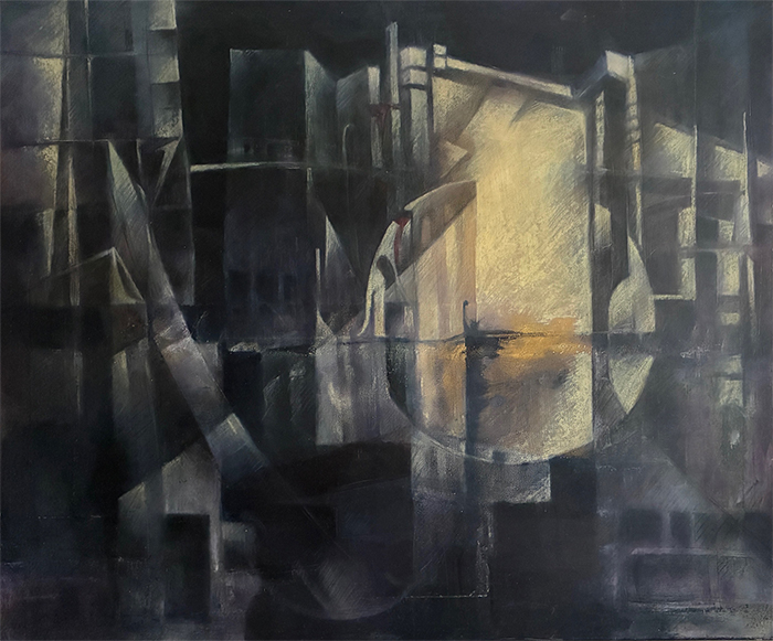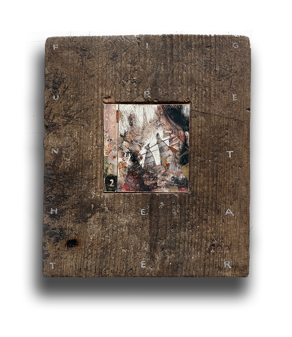 Ölfarbe auf Holzmalfläche, eingepasst und im Holzblock 24x28 cm verleimt, Tiefe 5 cm. 2026